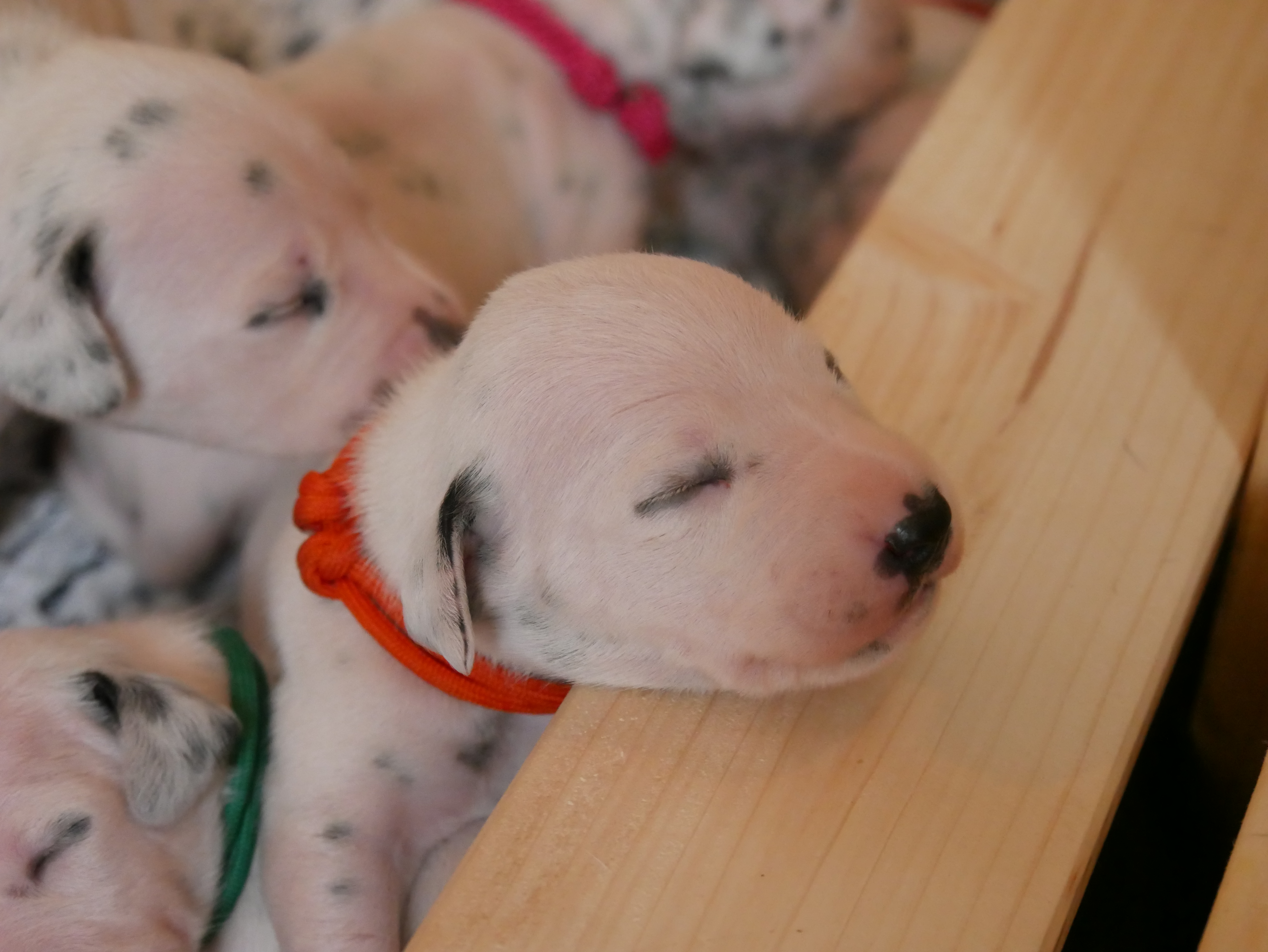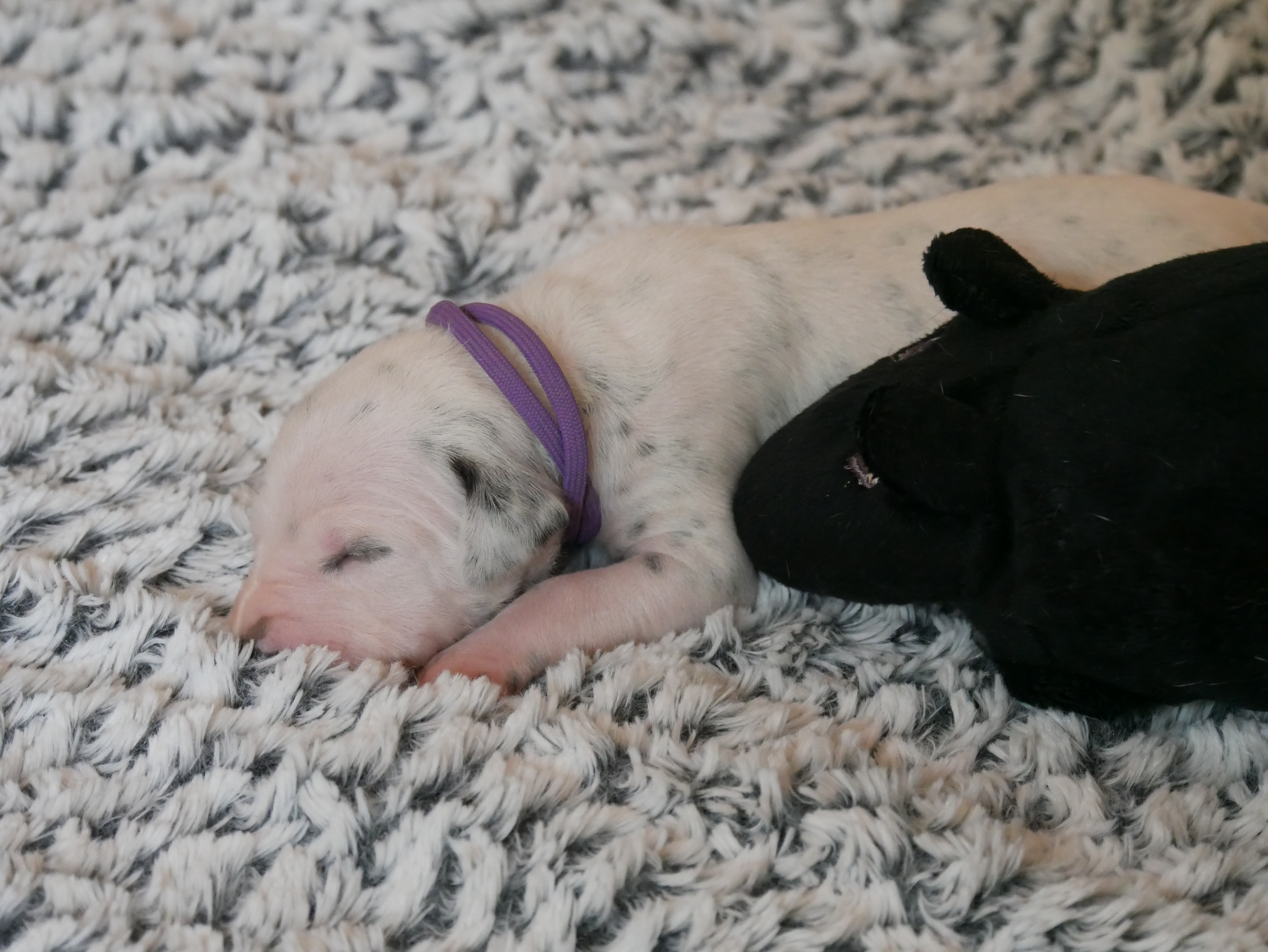 Die neugeborenen Welpen waren weiß – die Flecken sind in den ersten 14 Tagen entstanden und haben sich dann noch bis zu einen Jahr lang verstärkt.